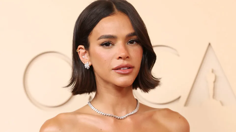 Bruna Marquezine deslumbra no Oscar com vestido prateado da Gucci